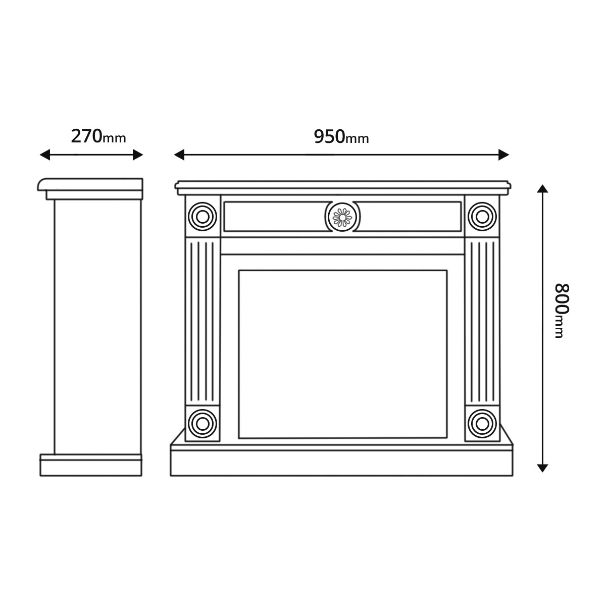 Bonita Fireplace Set & Mars, Dimensions (H*W*D): 800*950*270 mm, 1500 W