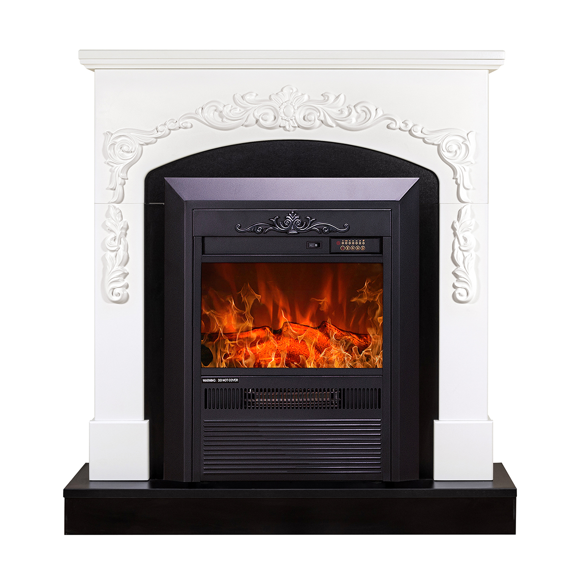 The Kazanovo portal is made in white and black. The upper part of the product is decorated with three-dimensional patterns, and the frame near the hearth and the lower part of the portal are painted black, which creates harmony and comfort. The product itself is made of such material as painted MDF.