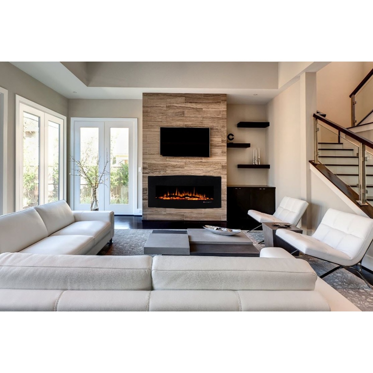 This model can be placed in a portal, built into wall niches or any other place, at the request of the client, allowing an allowance of 2 mm on the edges for ventilation. The functionality of the electric fireplace allows it to work in two modes: heating mode and decorative mode. The distribution of heat throughout the room is carried out using a silent convector. This model is quite economical, its maximum power is only 1.5 kW. An additional nice option is the LED backlight. Its presence gives the fire maximum credibility.
