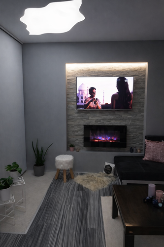Marcus electric fireplace is a contemporary with a realistic effect of a flame that will easily decorate your dining room, bedroom or cafe. This product is easy to attach to the wall, without the need for special skills or additional fasteners. The fireplace allows the operation in two modes: the heating mode and the decorative mode. The heat is distributed throughout the room using a silent convector. This model is quite economical, its maximum power is only 1.5 KW. The LED backlight creates a dreamlike atmosphere.