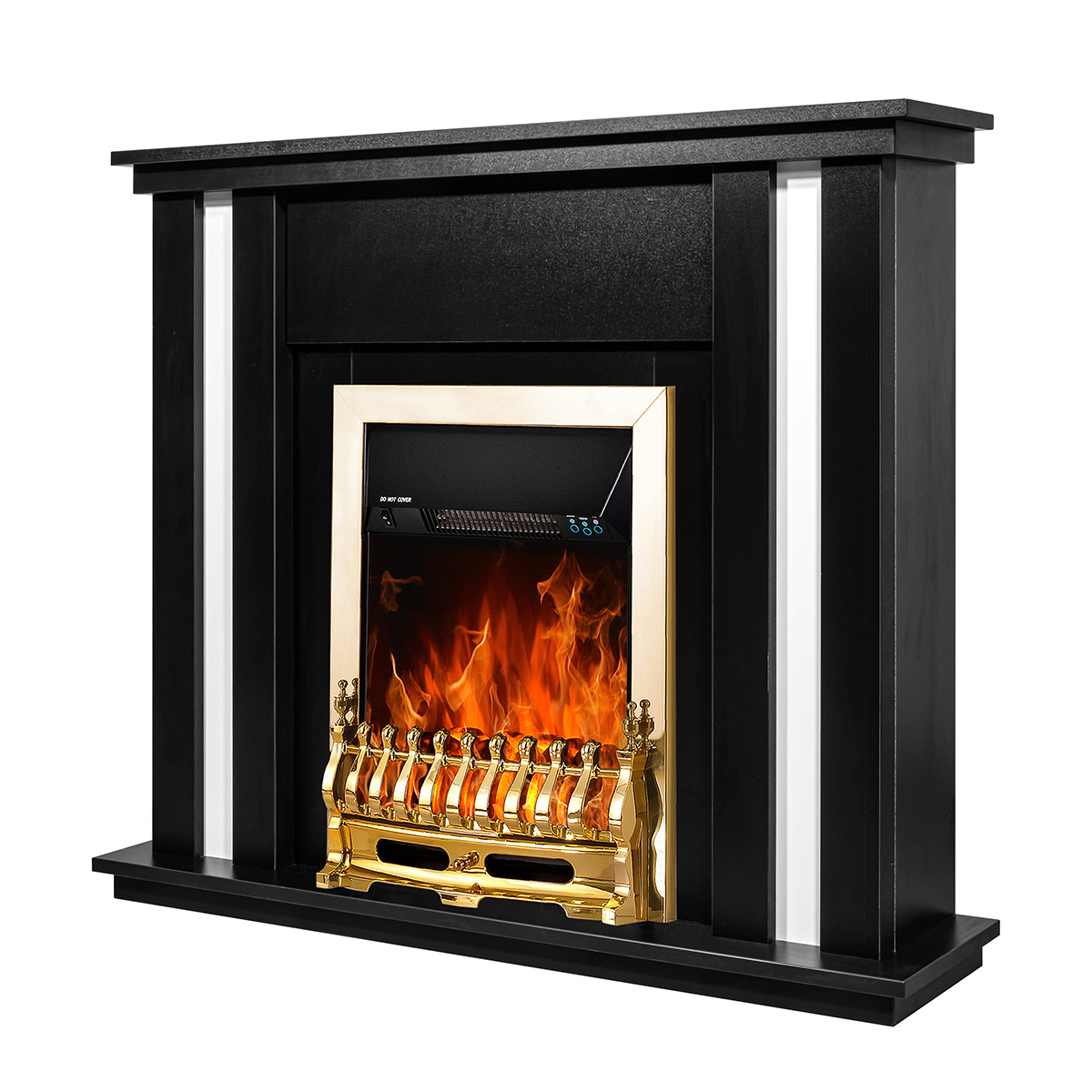 Electric fireplace "Galileo Gold" is made in a light design with a golden fence and frames. The device is capable of operating in 2 modes: in decorative mode and heating mode. In decorative mode, the device creates a cozy atmosphere with a high-quality simulated flame, the brightness of which can be changed using the remote control that comes with the kit. In heating mode, the electric fireplace is able to heat a room of 20m2. Overheating protection is responsible for the safety of the fireplace.