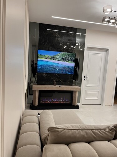 Chimenea eléctrica Palermo maxi & Schubert 42, Art Flame, 700x1500x300 mm, 1500W, más de 60 combinaciones de colores, Termostato, cristales y piedras